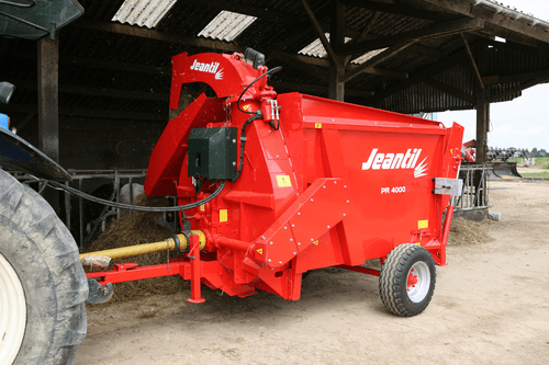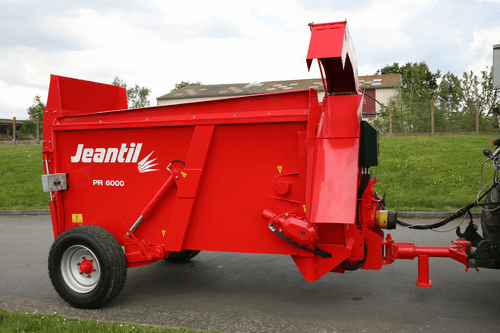 -GM = goulotte multifonction fixe paillage et distribution à droite. Option goulotte tournante 270° et casquette électrique