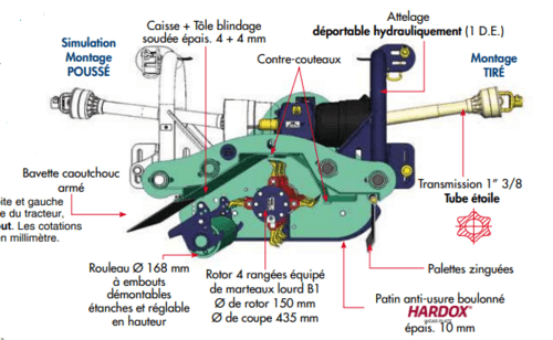 Rotor 4 rangées équipé de marteaux lourds B1.