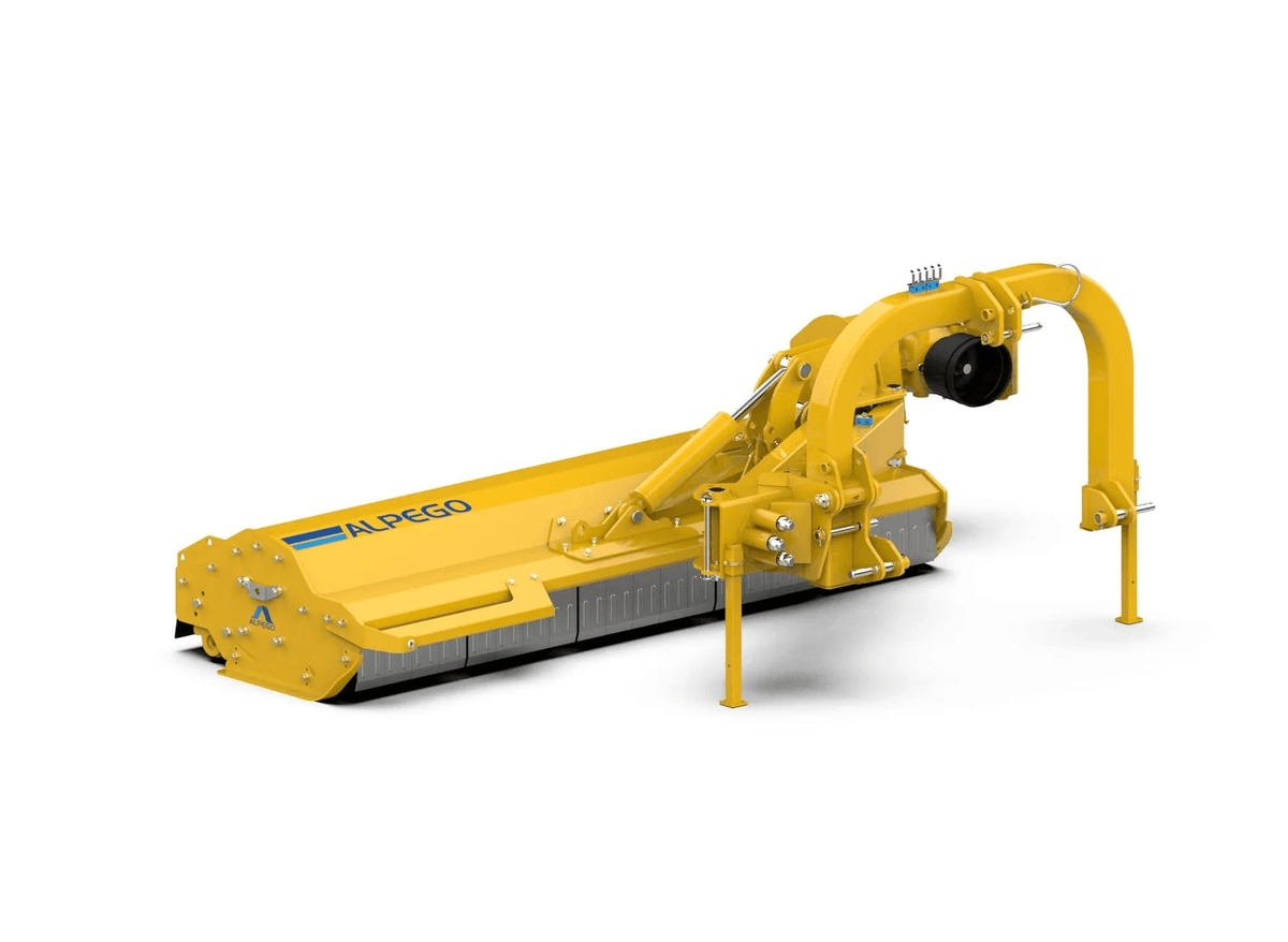 - Le modèle TL 50 avec une grande inclinaison hydraulique +90°/-65° avec soupape de sécurité, rotor de Ø 194 mm avec des marteaux et des vis, cardan double homocinétique, boîtier extérieur reculé pour faire avancer le centre de gravité. Attelage tracteur catégorie 3° avec mâchoire, supports d’exposition et de transport en position verticale, rouleau palpeur arrière Ø 160 mm. Largeur de travail jusqu’à 2,6 m