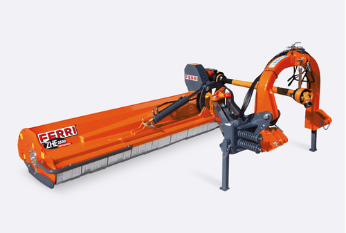 2 -La série ZHE pour productivité intense sur les espaces verts. Puissance de tracteur nécessaire de 100 à 160 cv. Largeur de travail 2,5 m avec une extension latérale jusqu’à 3,67 m. Capacité de coupe maximum Ø 5 cm.