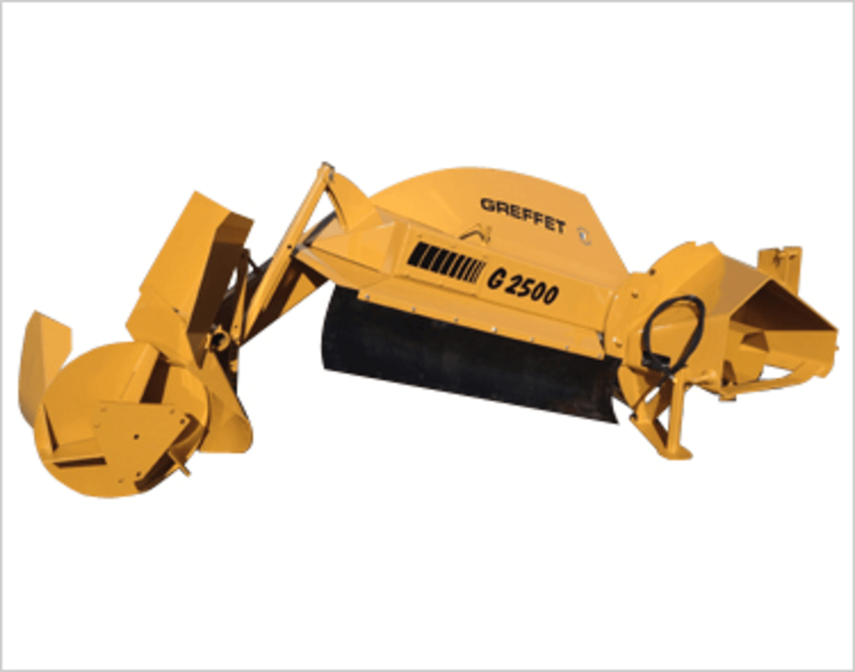 Pour drainage et irrigation, 4 diamètres de rotors au choix (30/40/50/60cm), éjection droite/gauche. Profondeur de travail maximum 1.10m en entretien, portée 2.5m. Poids 550kg.