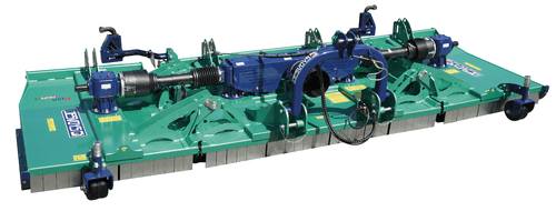 Suivi au sol réglable : rouleau à embouts démontables étanches et patins 8 mm avec semelle boulonnée en HARDOX®. Hauteur de coupe de 30 à 105 mm.