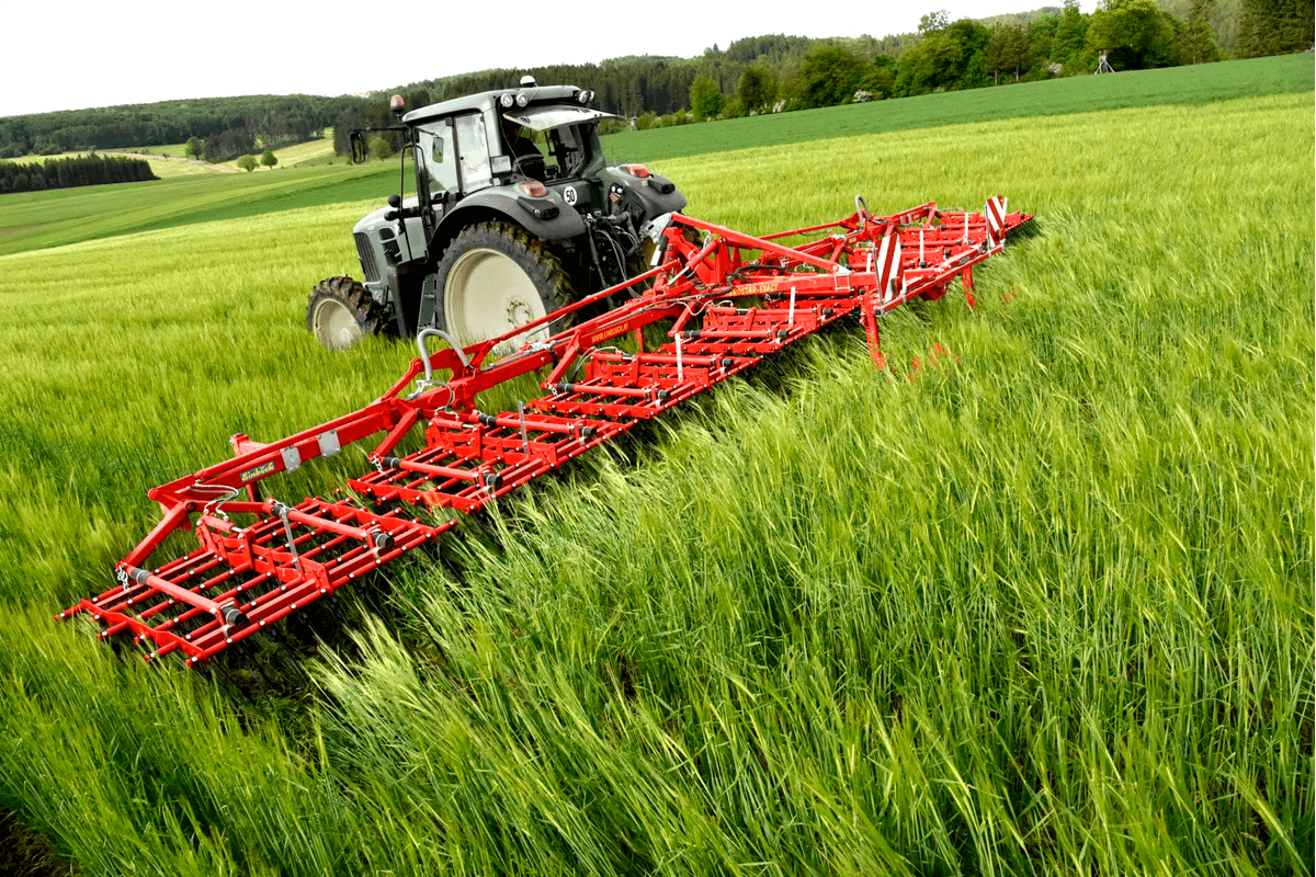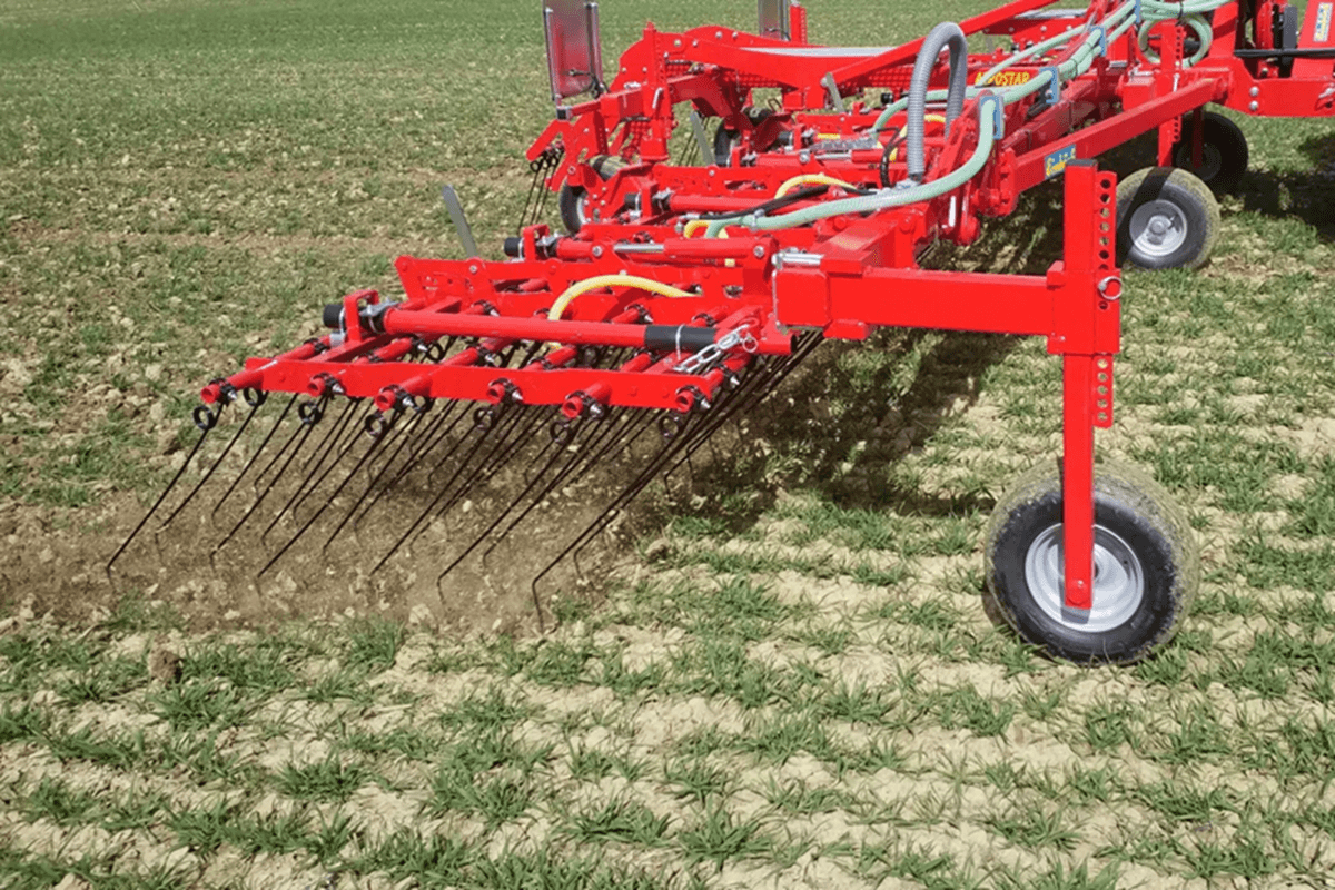 Les roues de jauges à l’arrière permettent un contrôle précis de la profondeur de travail, le réglage hydraulique permet d’avoir en permanence le même niveau de pression.
