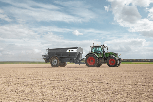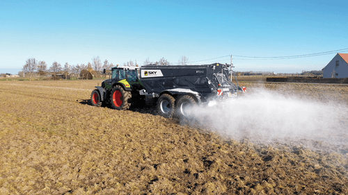 Remorque épandeuse semi-portée.