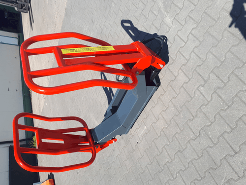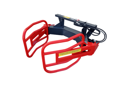 Pince balle ronde. Gamme RX. Attelage EURO. 1 vérin double effet, 2 bras mobiles. Diamètre de balles 0,90 à 1,60 m. Capacité 800 kg. Ouverture max des bras : 1,9 m. Poids : 155 kg.