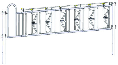 Le cornadis à encolure réglable automatiquement, polyvalent et silencieux s’adapte aux bovins encornés ou écorné (modèle Confort SRS).