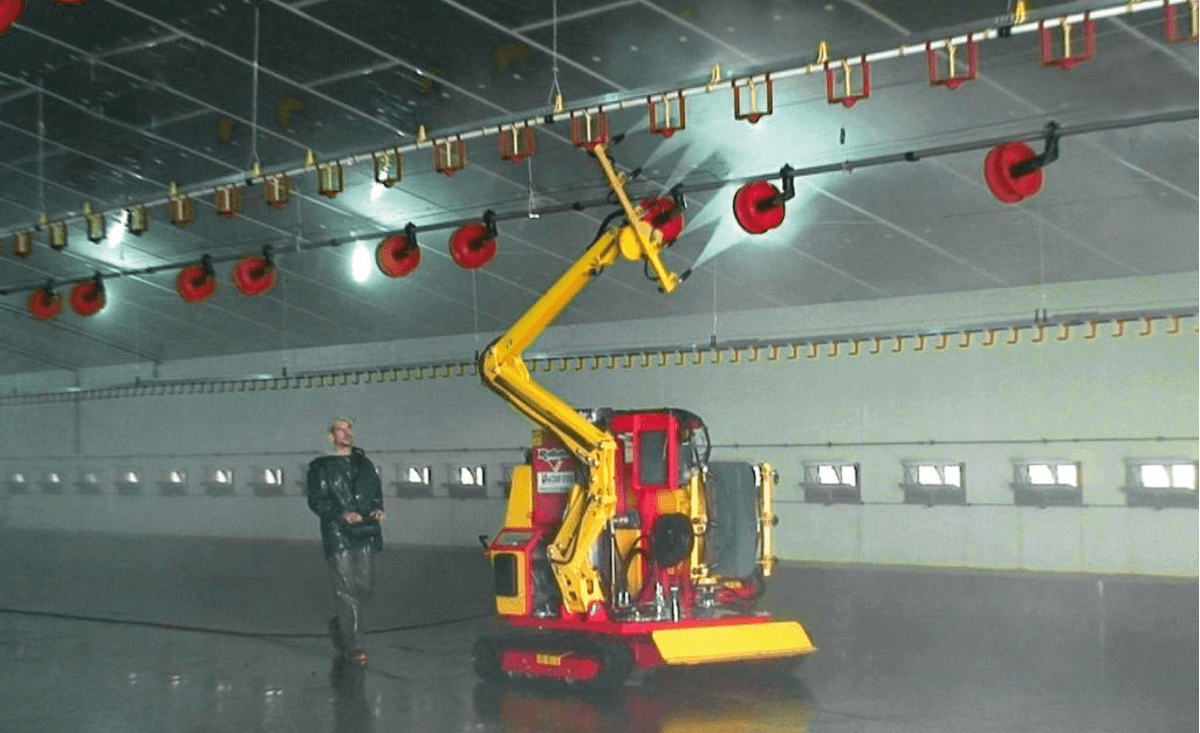 Lavage mangeoires, lavage plafonds.