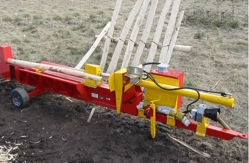 La fendeuse de pieux TRAINEE a une capacité de fendage de pieux fixe de 2,60 m (3,20 m en option). Le transport peut se faire par un tracteur de faible puissance grâce aux deux roues et la flèche d’attelage.