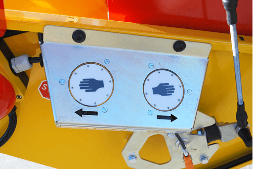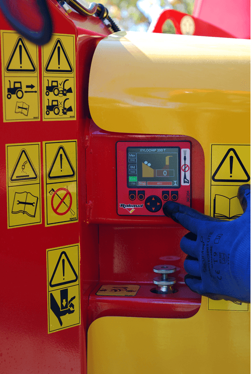 Molette de réglage de l’avancement du rouleau d’alimentation. Réglage hydraulique de la vitesse du rouleau par molette extérieure.