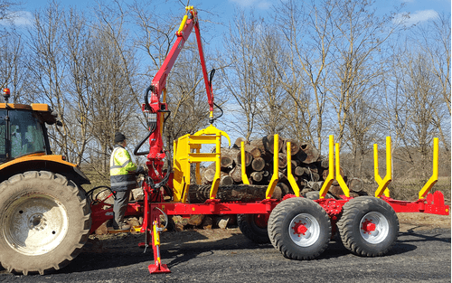 Remorque forestière monopoutre ou bipoutre pour un PTAC de 11 et 15 tonnes selon modèle.