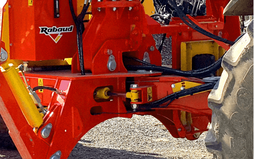 Timon articulé +/- 32° avec 2 vérins hydrauliques.