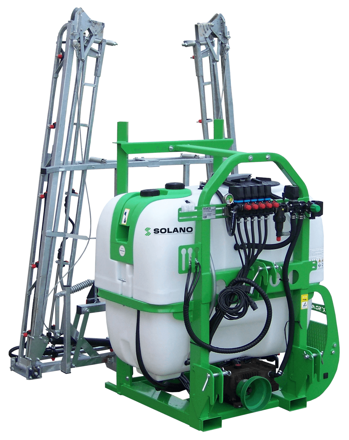 Le pulvérisateur de base, pouvant aller de 1200 à 2000L, est fabriqué à partir d'un châssis en acier ainsi que la tôle. Le réservoir est en polyéthylène avec des réservoirs auxiliaires lave-mains et rince circuit. Peint en poudre polyesther qualicoat, il possède un marche pieds rabattable, des rampes hydrauliques avec ouverture droite/gauche découplée et un porte-buses en plastique trijets antigoutte de série. Fourni avec un filtre d'aspiration muni d'une vanne de sécurité, un filtre de pression sur régulateur. Possibilité de Isobus ou DPAE. Beaucoup d'options a choisir en option selon vos besoin.