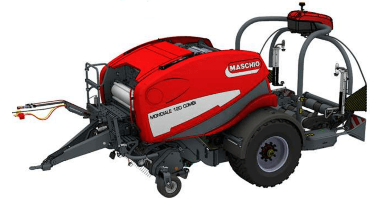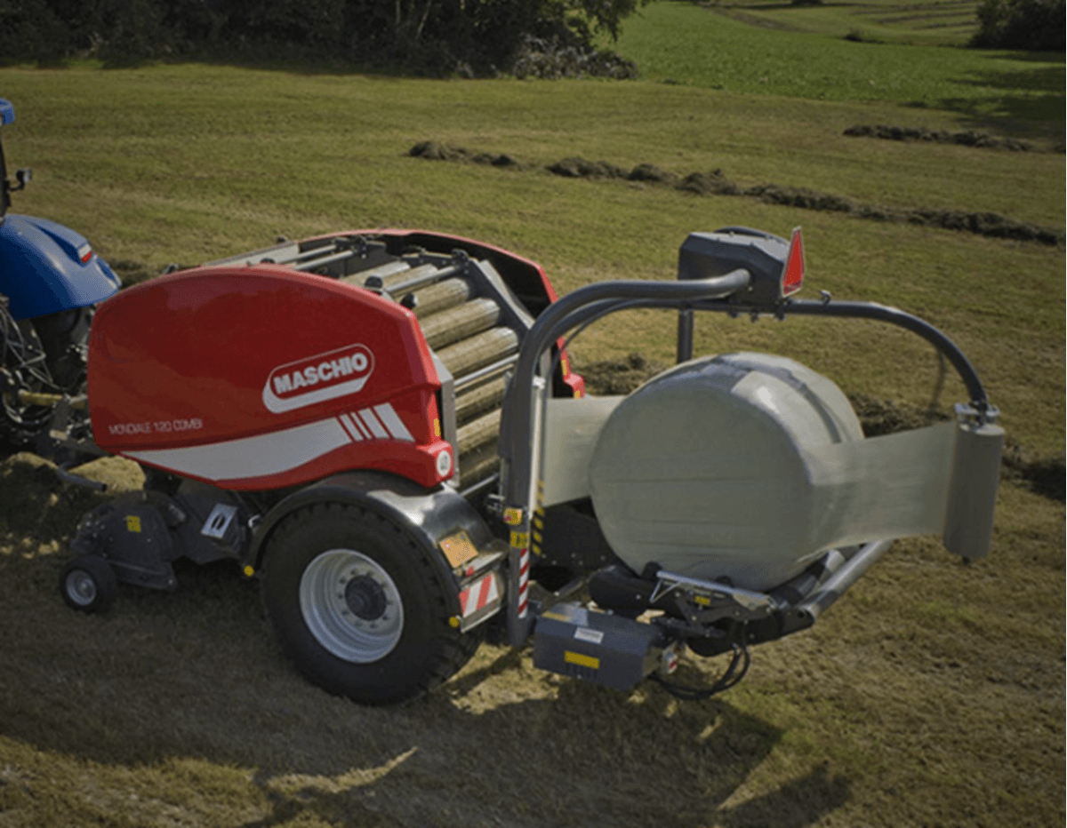 La presse MONDIALE 120 COMBI propose un pressage de grande qualité et un enrubannage fiable. Cette presse à chambre fixe et 19 rouleaux avec ameneur rotatif une totalement automatique dans toutes ses fonctions avec possibilité de gérer à la fois les fonctions de la presse à balles rondes et de l'enrubanneuse. Ces opérations sont régies depuis la cabine du tracteur via ISOBUS. Table d’enrubannage avec double bras satellite