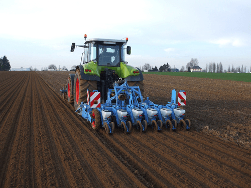 Semoir monograines pneumatique à enterrage à disques.