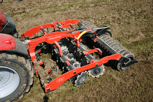 Il permet en un seul passage de déchaumer, décompacter, mulcher et ré-appuyer grâce à une combinaison dents et disques.