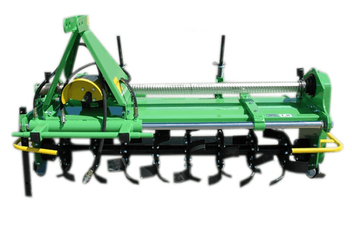 Fraise rotative avec rotor à lames équerres et prise de force à 540 tr/min ou 1000 tr/min.
