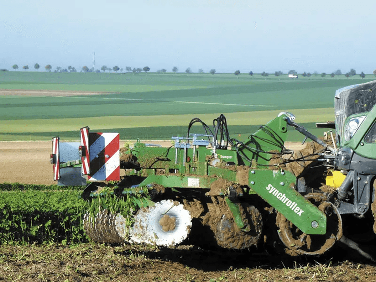 - 3 SYNCHROFLEX : équipé d’un rouleau Lames Flex et vibroculteur 2 rangées de disques courbes ou droits Ø 460 mm