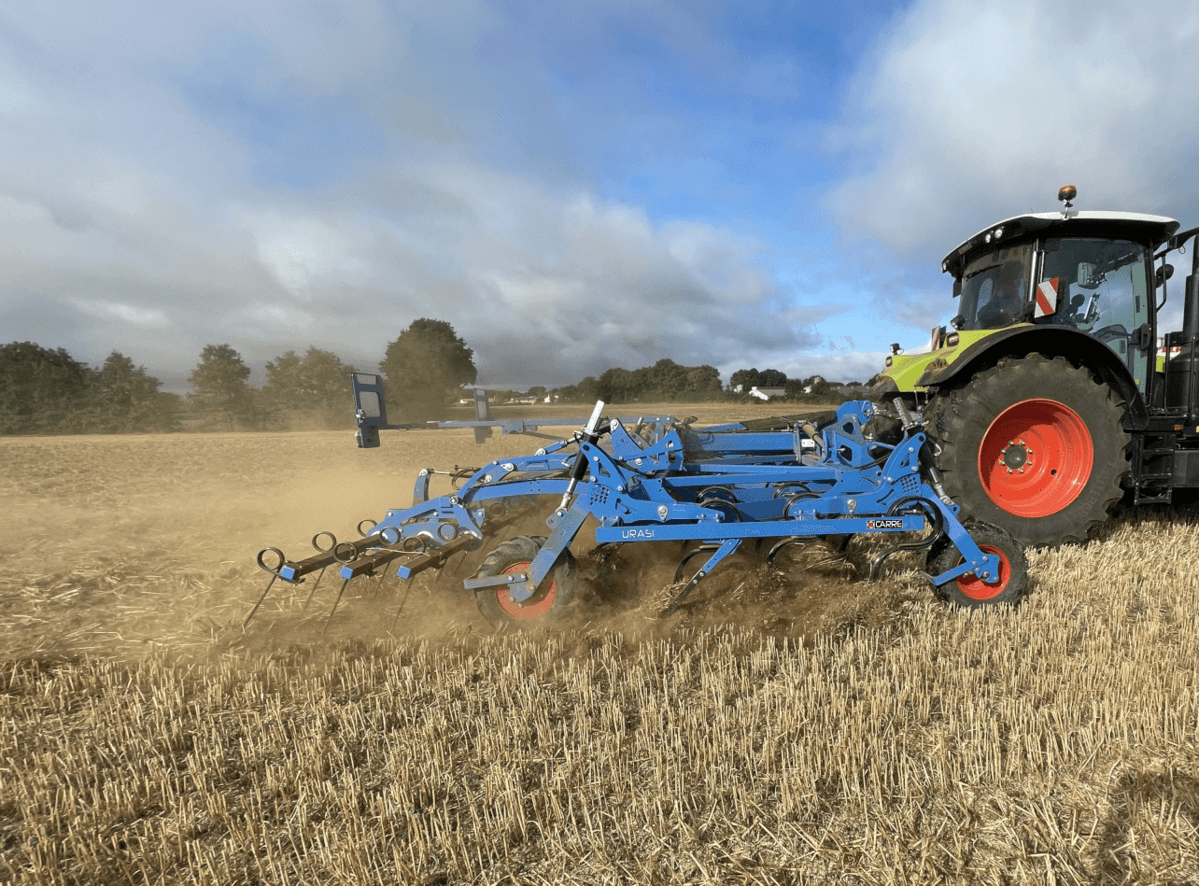 La répartition des dents sur 4 rangées et son dégagement sous châssis important, lui confère un flux de travail inégalable. Il est équipé de dents 80x12 mm avec contre ressort pour garantir une profondeur de travail constante. L’utilisation de soc triangulaire de 250 mm plat laisse un sol parfaitement travaillé à chaque passage du scalpeur. Le réglage indépendant de la hauteur des roues de contrôle avant et arrière permet de garantir une profondeur de travail constante et un suivi optimal du relief. La herse peigne arrière à réglage hydraulique montés sur 3 barres permet de remettre le racinaire des résidus en surface sans risque de reprise. Le tout est facilement contrôlable depuis la cabine grâce à un boîtier, pour un confort et une maîtrise totale de vos opérations. Disponible en version fixe et repliable portée 3 points de 3 à 6m.