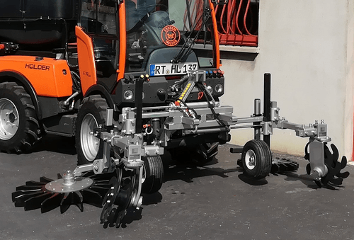 Ø 920 mm. Distance de 16 cm entre les doigts. S’adapte sur la majorité des cadres. Convient parfaitement à une utilisation en cultures fruitières. Utilisable pour des troncs à partir de 6 cm de diamètre.