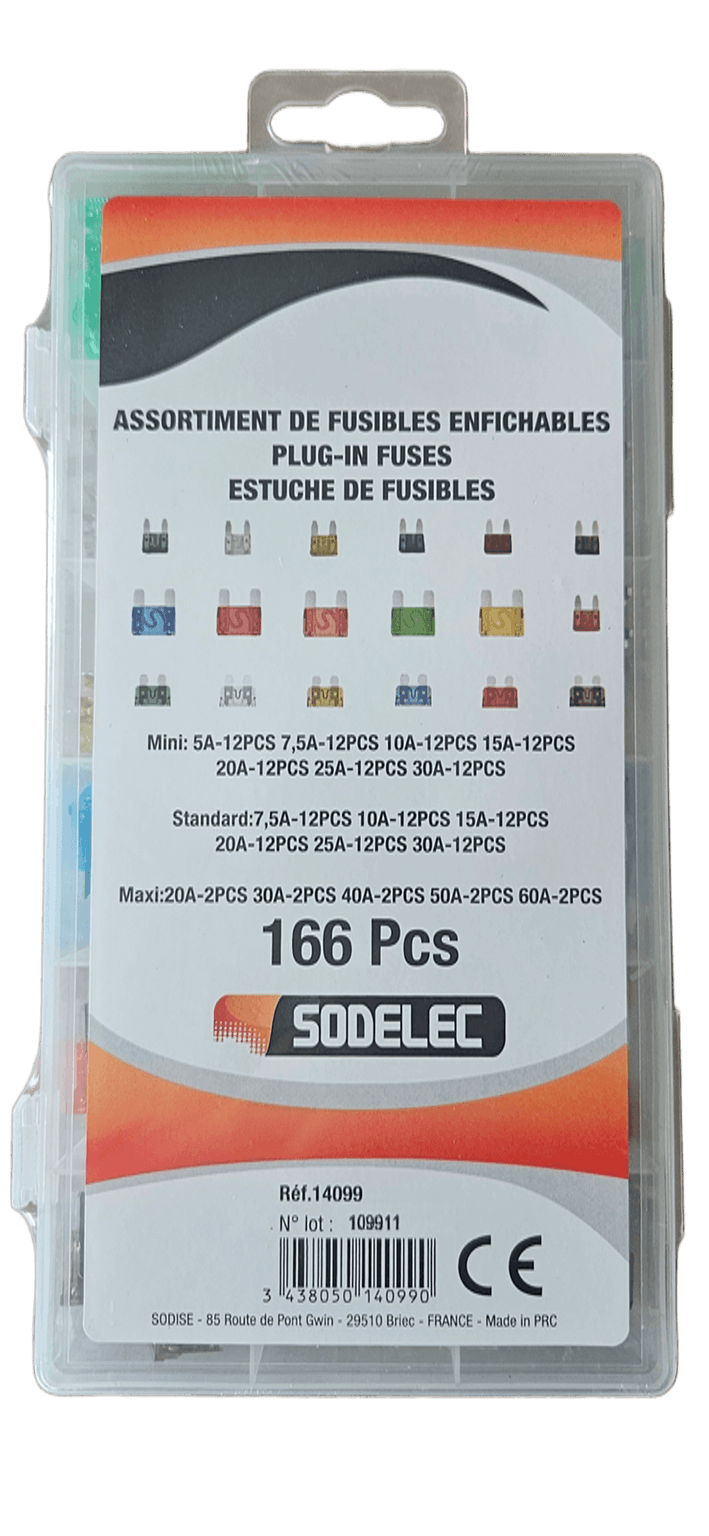 Fusibles enfichables mini, standard et maxi 166 pièces