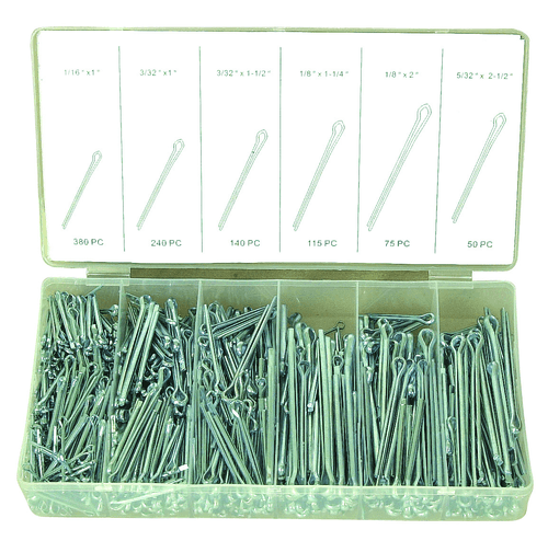 Coffret plastique de 1000 goupilles fendues à œil assorties.