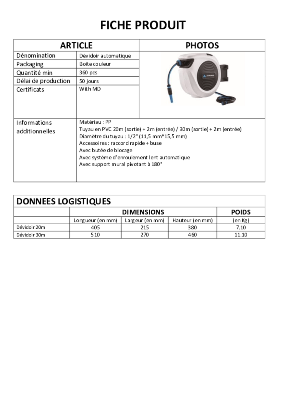 Ø15. Longueur 50 m. PVC souple anti-UV. Pression maxi : 20 bar.