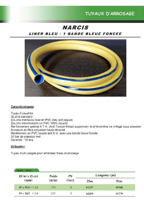 Ø19. Longueur 25 m. PVC souple anti-UV. Pression maxi : 20 bar.