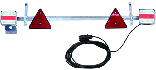 2 lanternes, 2 triangles réfléchissants, 2 pattes de fixation réglables et 1 support de plaque.