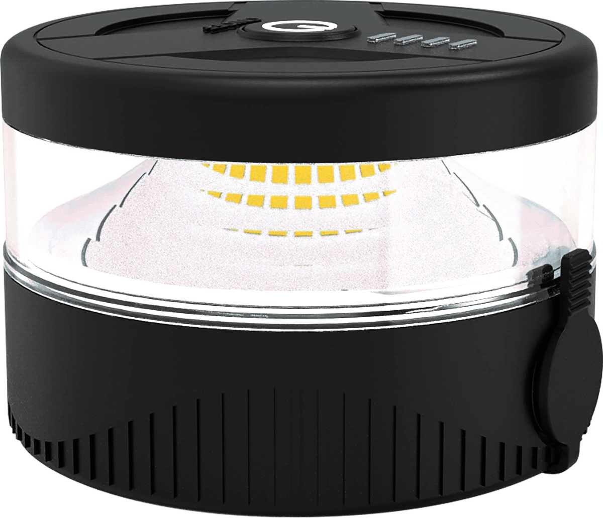 Balise de secours led 2 en 1. Tension : 5V, 1A. La base magnétique permet le positionnement sur toute surface métallique. 4 LED blanches / 28 LED oranges. 7 modes possibles : simple flash, double flash, triple simple, quintuple flash, double flash et quadruple flash alternés, SOS, lampe de secours (lumière blanche). Température d'utilisation : de -40° à +60°C. Batterie Li-ion : 2200mAh, 3,7V. IP 67. Diamètre : 80 mm, hauteur : 54,5 mm. Livré avec câble USB-C. Poids : 300 g.