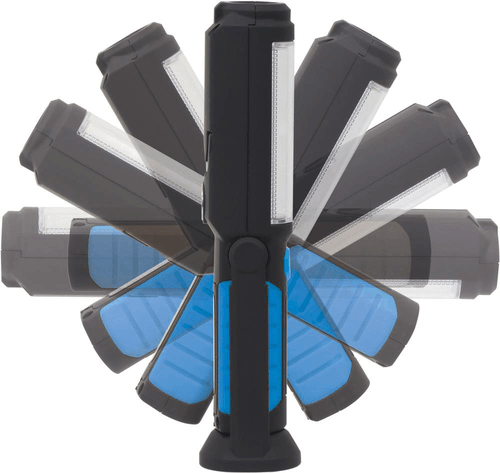 Lampe torche led à batterie rechargeable. Support magnétique pivotant sur 180°. Corps en ABS léger, résistant aux chocs. 1 led 250 lm + 1 led 50 lm. Batterie 3,7 V/2000 mA/h Li-Ion avec prise de chargement USB. Permet de recharger les appareils type téléphone portable. Temps de charge : 4-5 h. br/>Autonomie : 5 h. Avec crochet pivotant 360°.