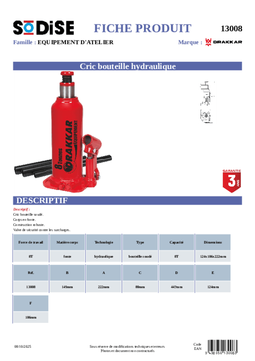 Corps en fonte. Modèle homologué. Construction robuste. Valve de sécurité contre les surcharges.