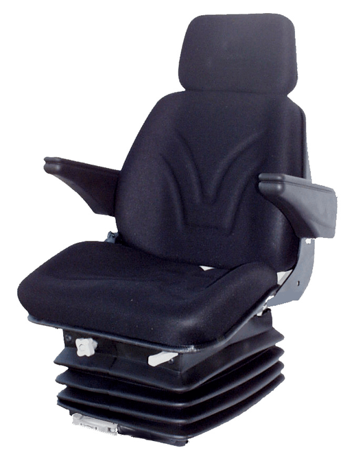 Suspension pneumatique 12 V basse fréquence. Revêtement tissu. Largeur coussin assise 530 mm. Avec accoudoirs.
